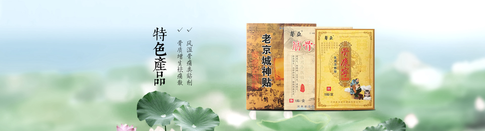 公司主要從事貼劑、膏藥、粉劑及醫療衛生材料等多種劑型生產銷售。主導產品有:骨質增生袪痛貼、肩周炎一貼靈、安痛貼[系列]、偏癱威靈貼、腳氣百分百、兩面針抗菌液、痛經百消貼、乳腺增生百消貼、無痕燒傷膏、等二十多個產品。